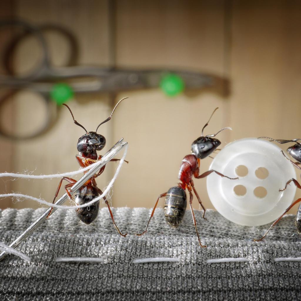 » Wallpaper Three ants sew a button
