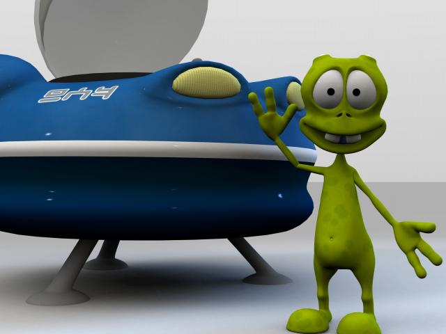 Wallpaper Green alien at the spaceship