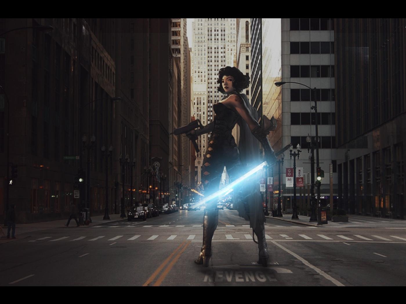 Wallpaper Girl with a sword in the street game Gunz
