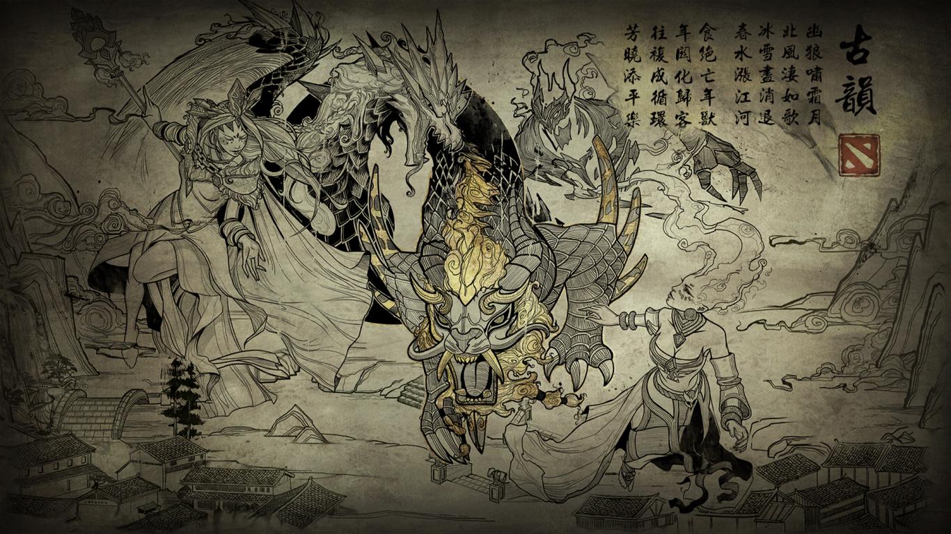 Wallpaper Game Dota 2 in the style of Japanese painting