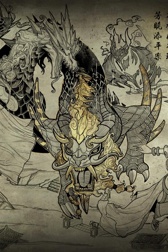 Wallpaper Game Dota 2 in the style of Japanese painting