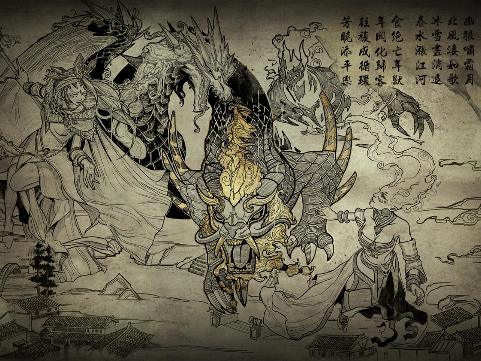 Wallpaper Game Dota 2 in the style of Japanese painting