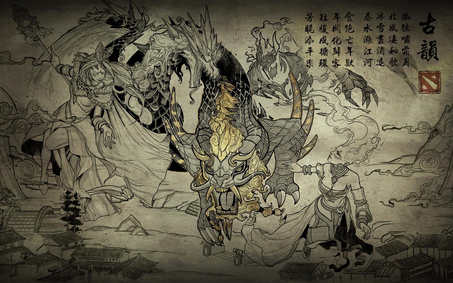 Wallpaper Game Dota 2 in the style of Japanese painting