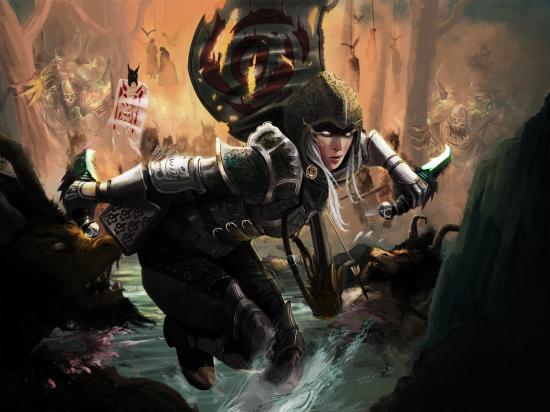 Wallpaper Hunter demons of the game Diablo 3, gray background