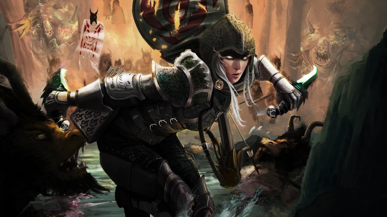 Wallpaper Hunter demons of the game Diablo 3, gray background