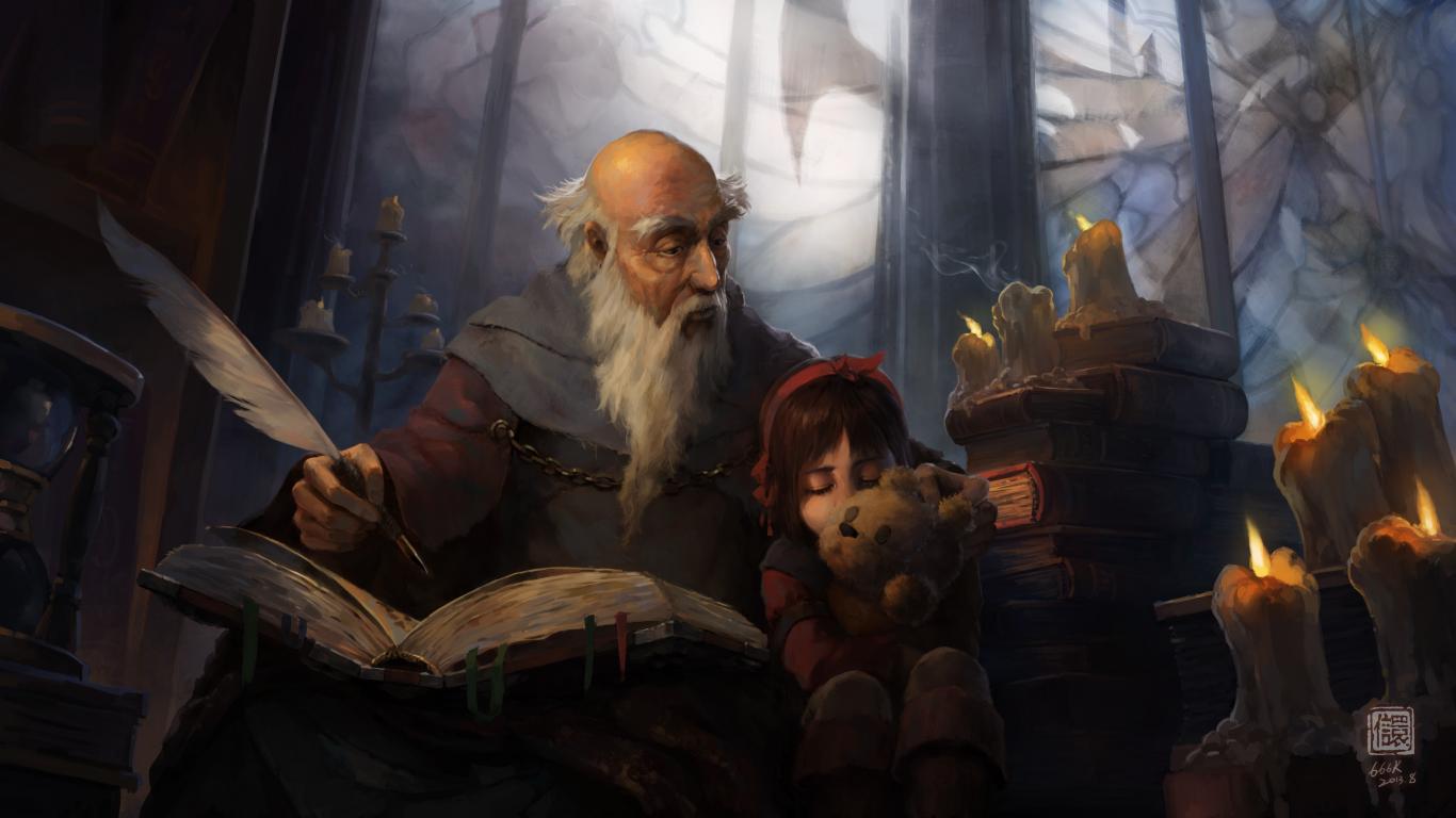 Wallpaper The old man and the girl, the game Diablo