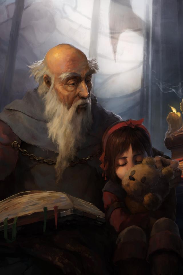 Wallpaper The old man and the girl, the game Diablo