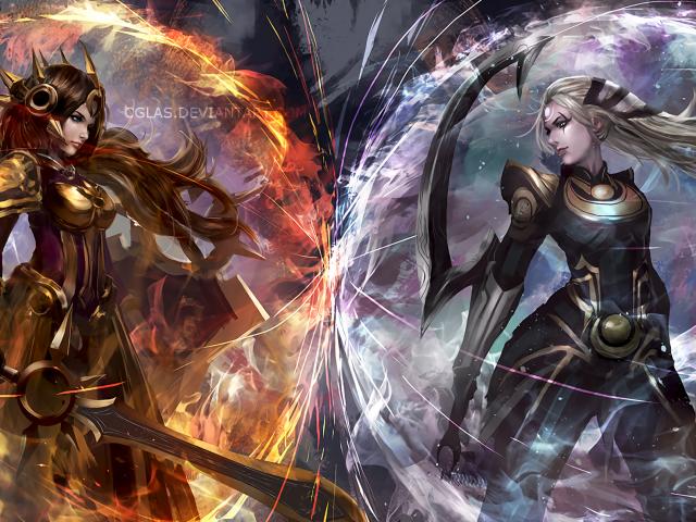 Wallpaper Warriors Diana and Leona characters of the game League of Legends