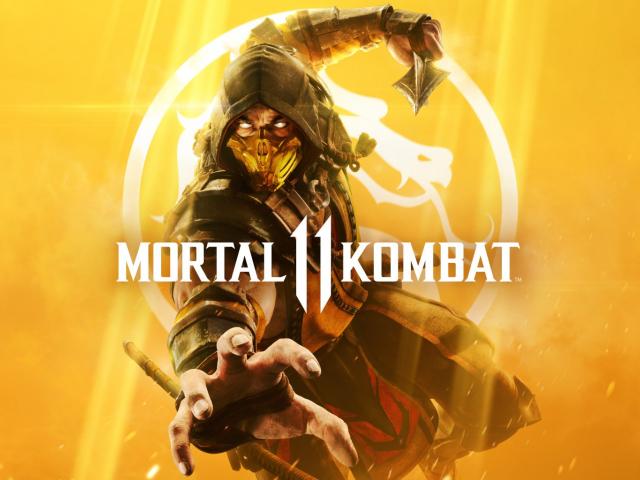 Wallpaper Poster of a computer game Mortal Kombat 11 with the character Scorpio