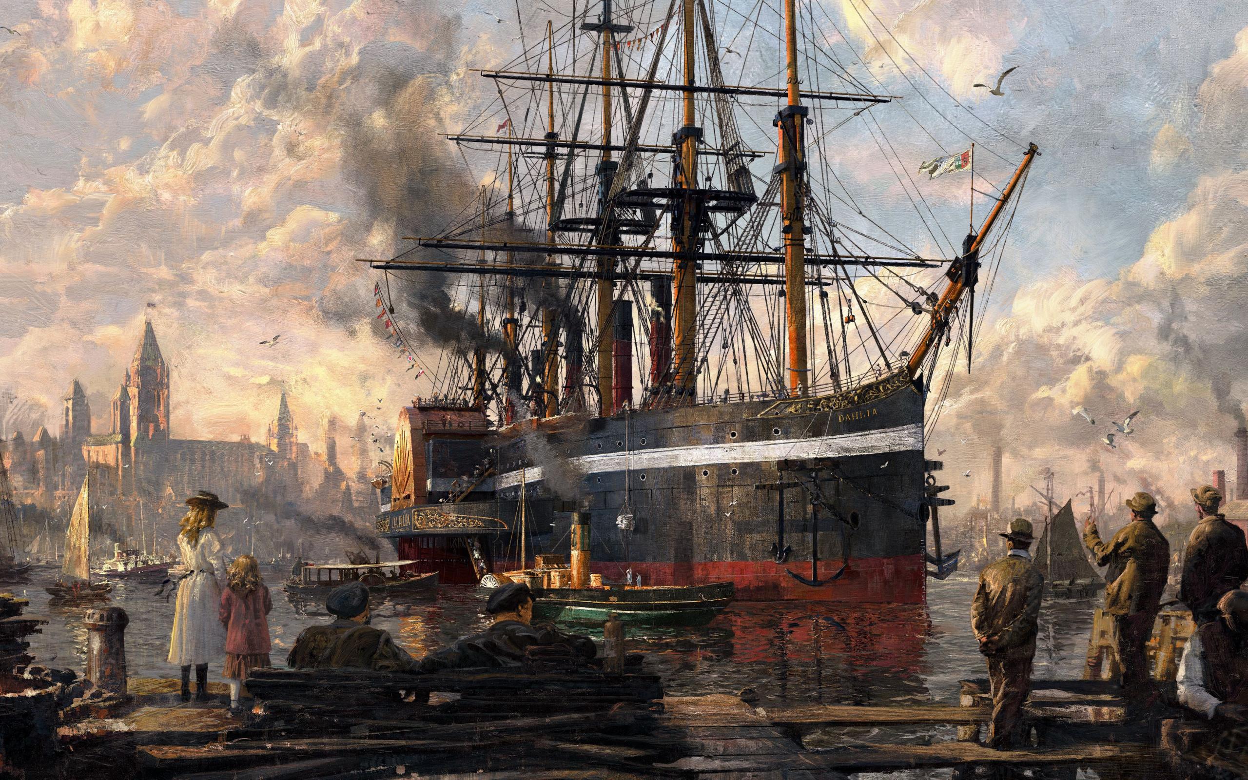 Wallpaper Ship in port frame computer game Anno 1800, 2019