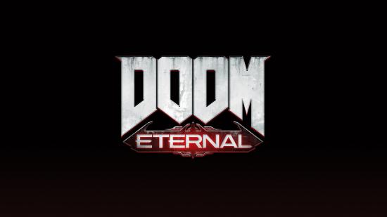 Wallpaper Logo of a new computer game DOOM Eternal on a black background