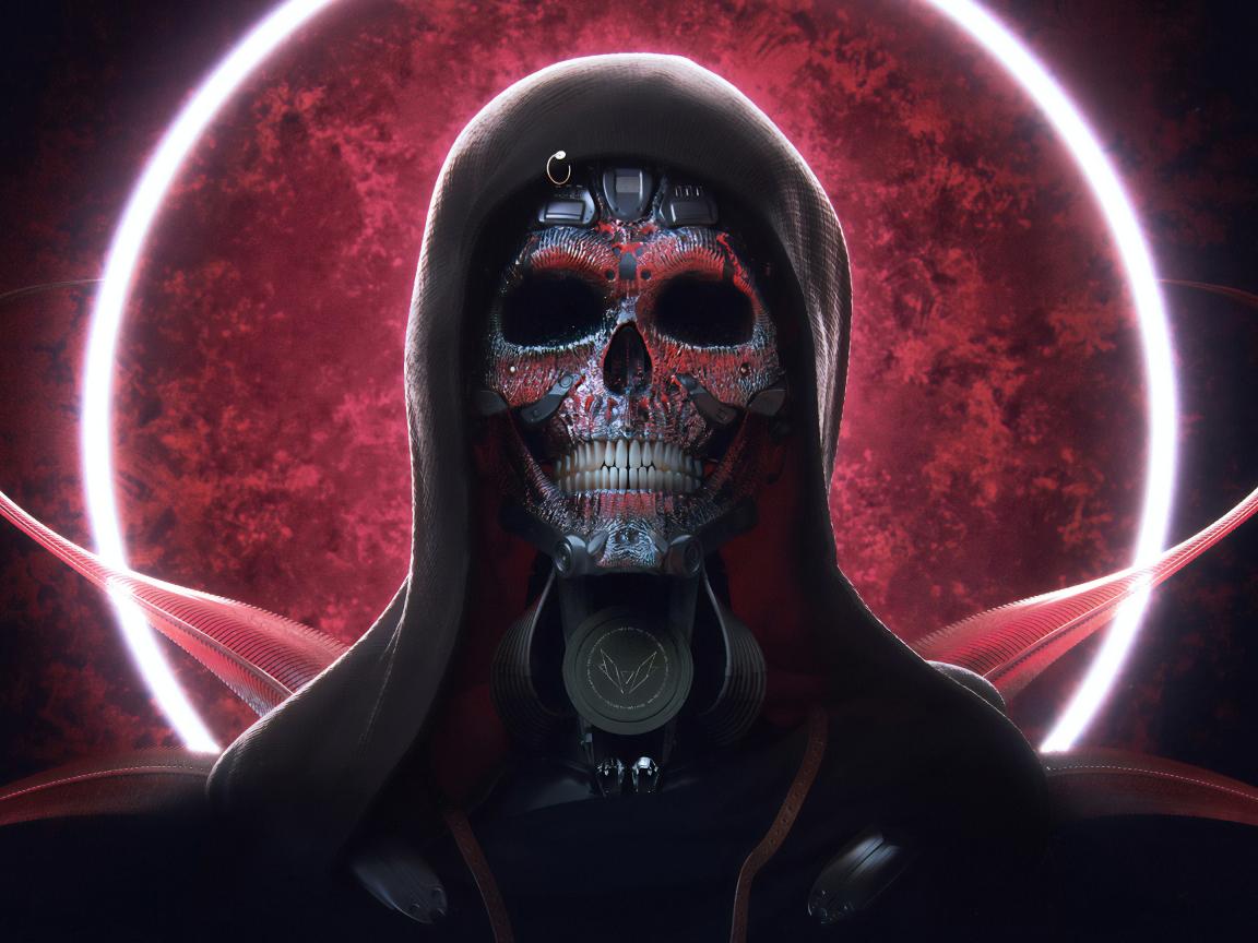 Wallpaper Cyborg in a black hoodie on a background of the red moon