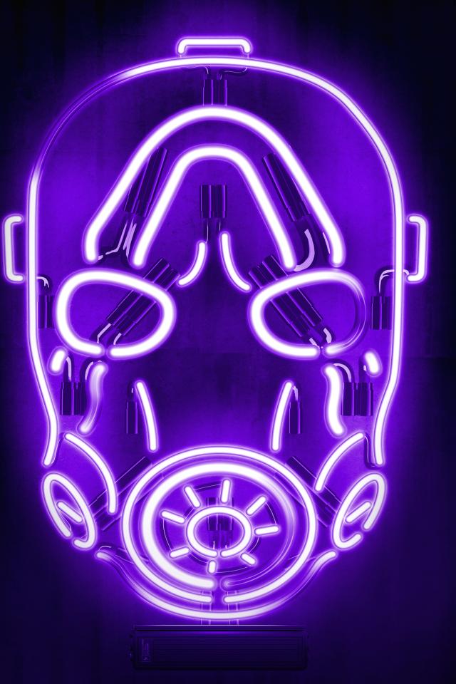 Wallpaper Mask from the Borderlands video game on a lilac background