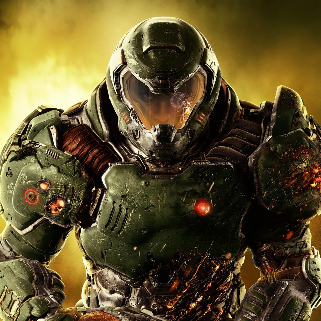 Wallpaper Warrior in armor character computer game Doom Eternal, 2020