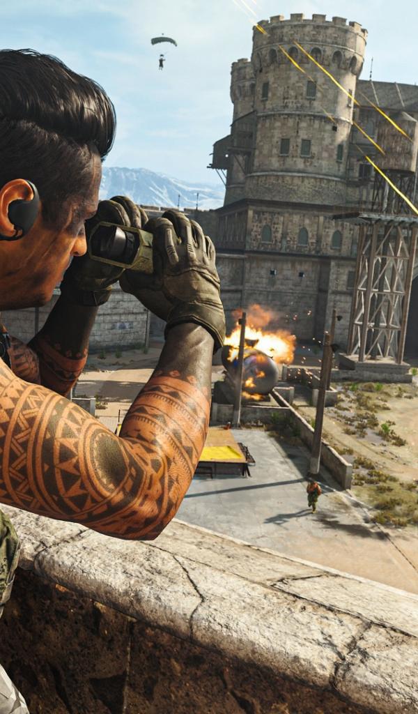 Wallpaper A soldier looks through binoculars a computer game Call of Duty: Warzone