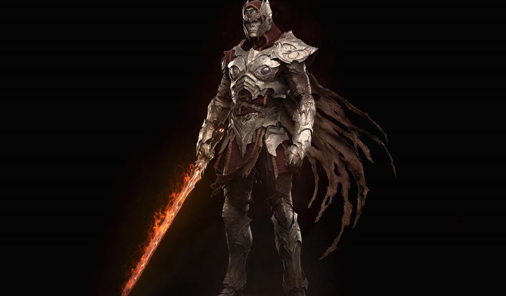 Wallpaper Warrior in iron armor with a fire sword in his hand