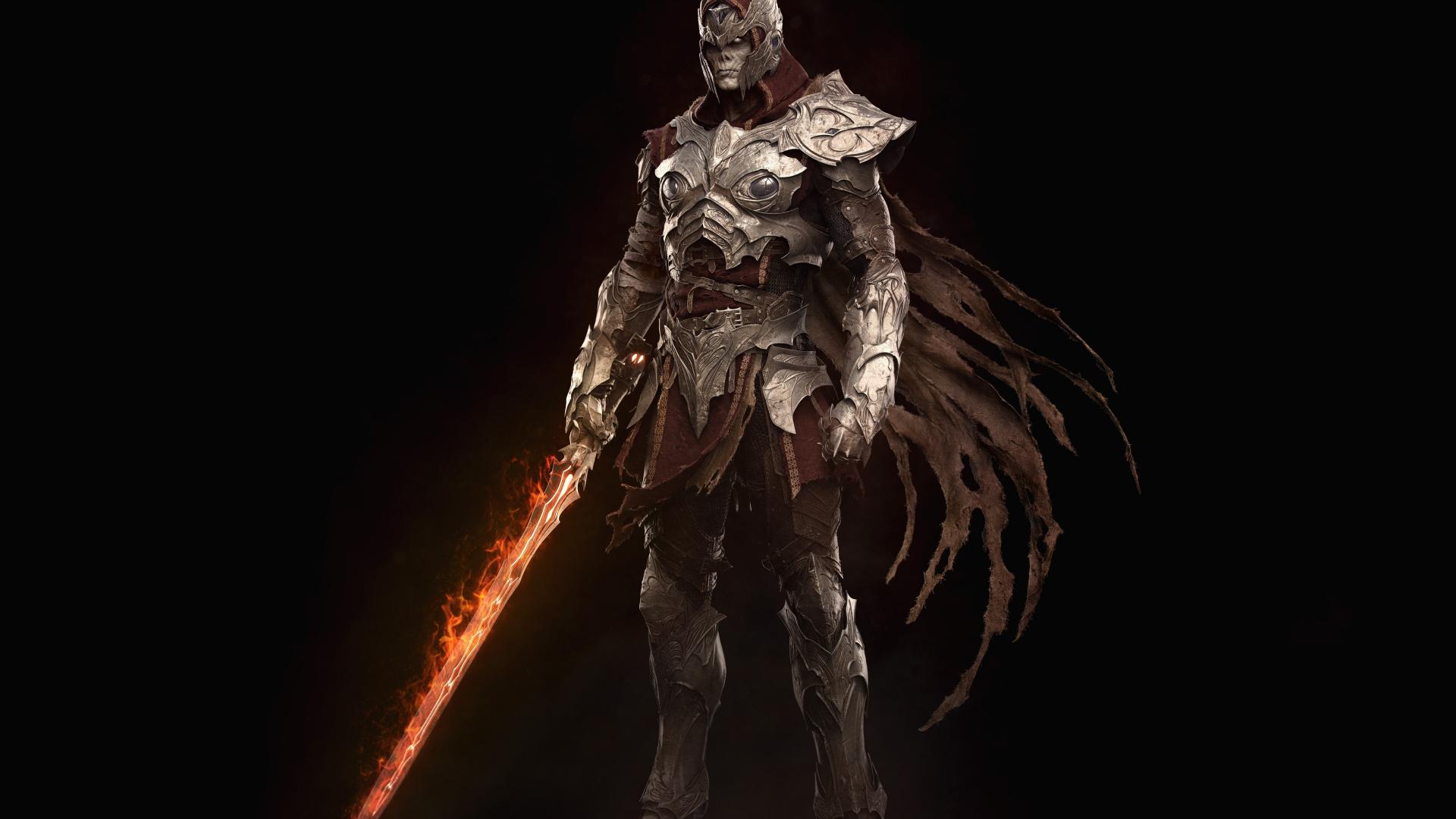 Wallpaper Warrior in iron armor with a fire sword in his hand