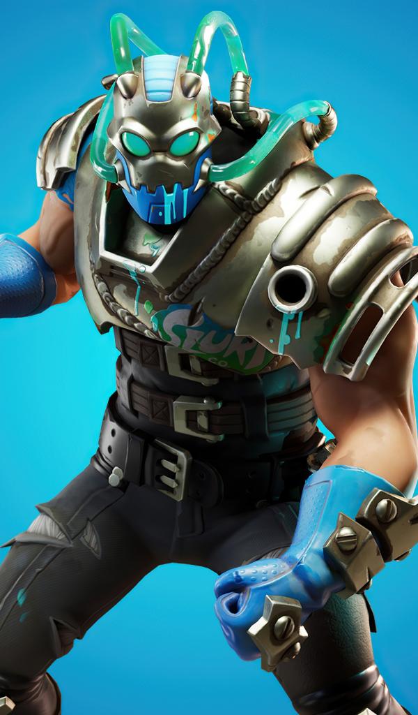 Wallpaper Warrior chooses weapons in Fortnite game on blue background