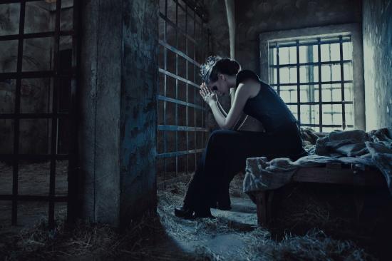 Wallpaper The girl is sitting behind bars in jail