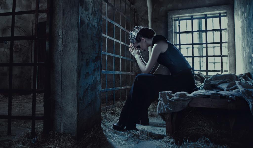 Wallpaper The girl is sitting behind bars in jail