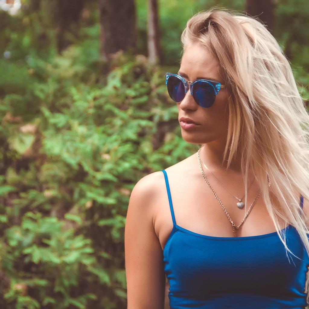 Wallpaper The girl in blue sunglasses