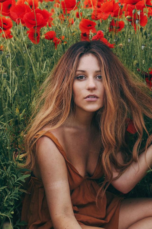 Wallpaper Beautiful smiling girl in a field with red poppies
