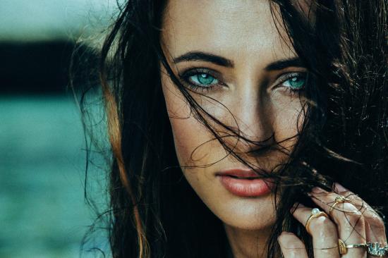 Wallpaper Green-eyed brunette with long hair, portrait