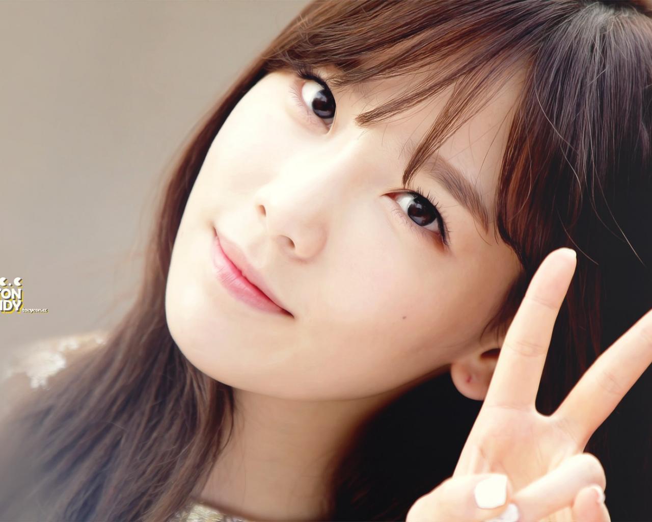 Wallpaper Korean girl showing victory sign