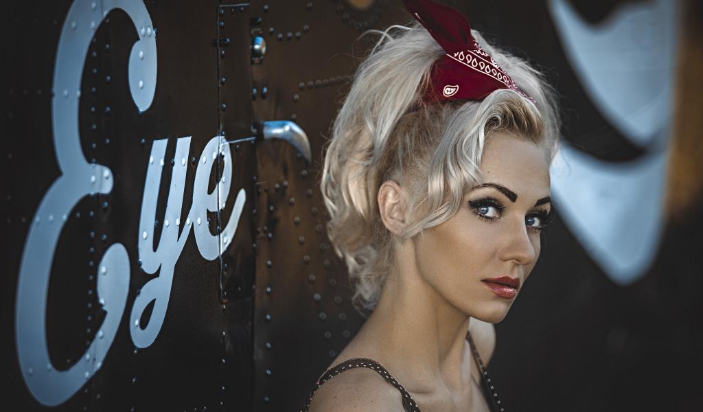 Wallpaper Blonde with retro hairstyle at the door of the dressing room