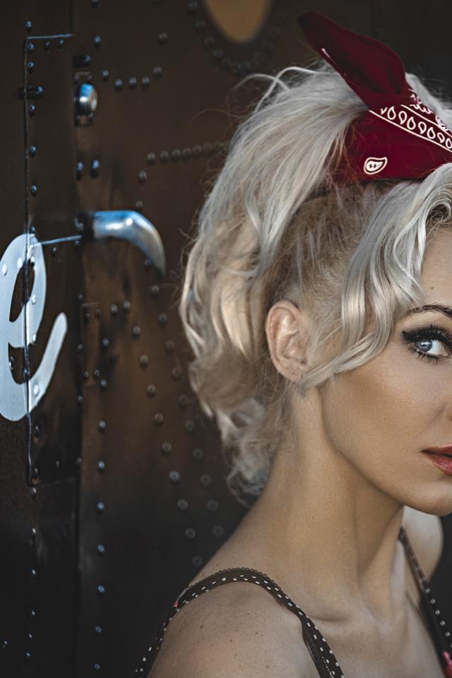 Wallpaper Blonde with retro hairstyle at the door of the dressing room