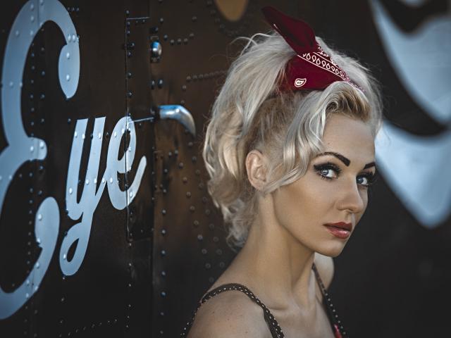 Wallpaper Blonde with retro hairstyle at the door of the dressing room