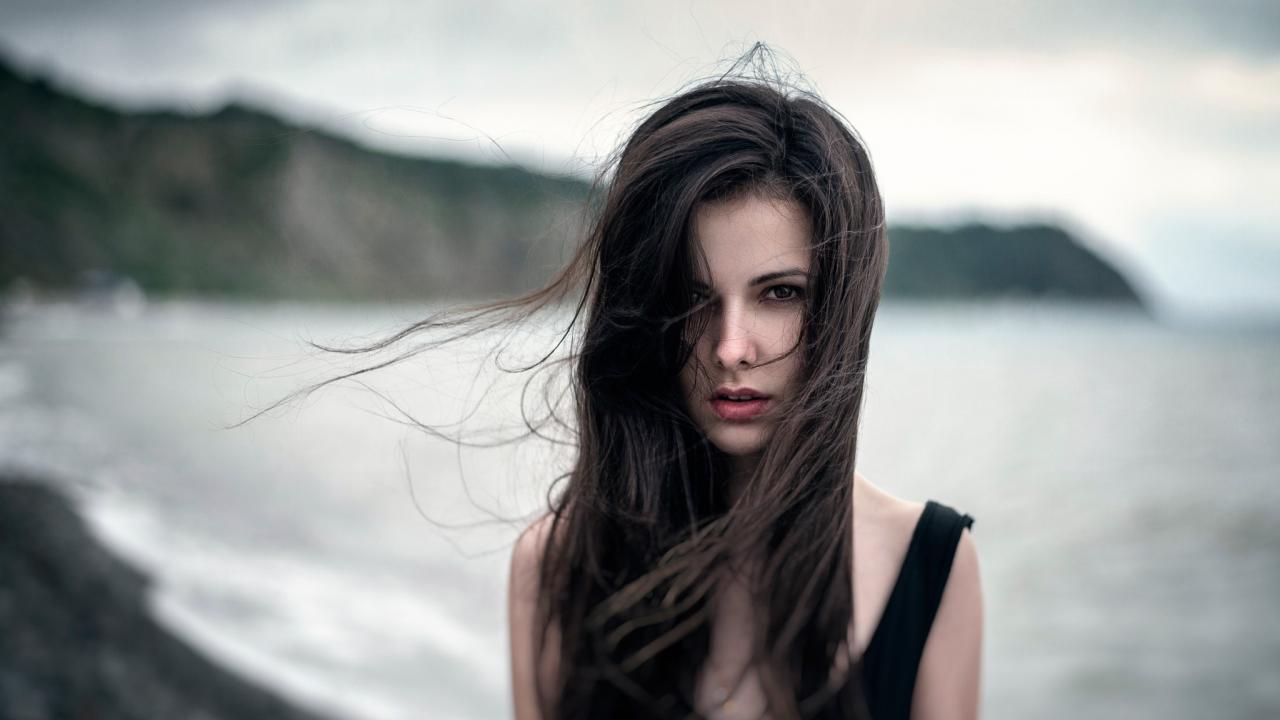 Wallpaper The wind ruffled the girl`s hair by the sea, portrait