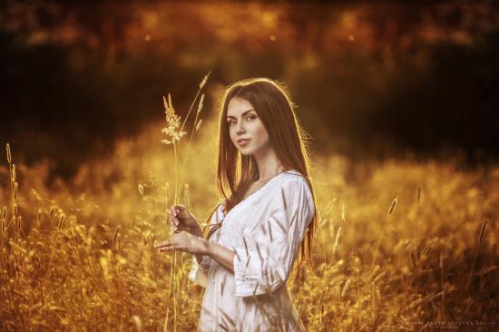 Wallpaper A girl in a white dress holding a spikelets