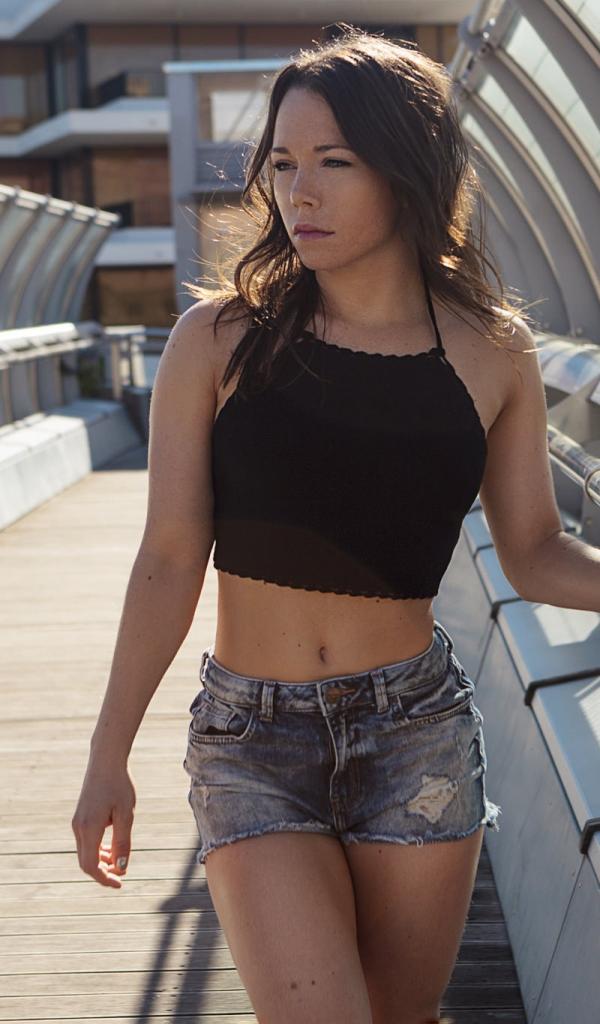 Wallpaper Girl in denim shorts on the bridge