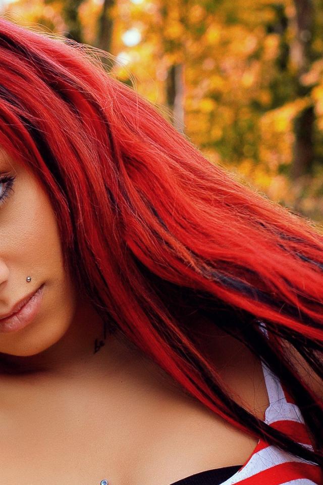 Wallpaper The girl with red hair and a nose ring