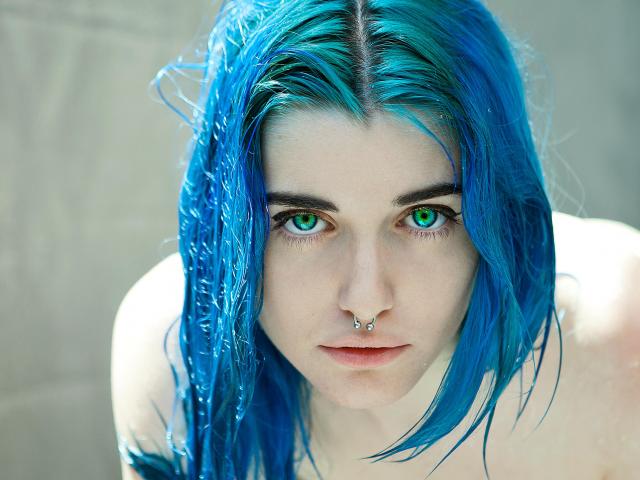 Wallpaper Green-eyed girl with blue hair and a nose ring