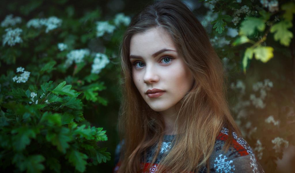 Wallpaper Portrait of the girl against the backdrop of greenery
