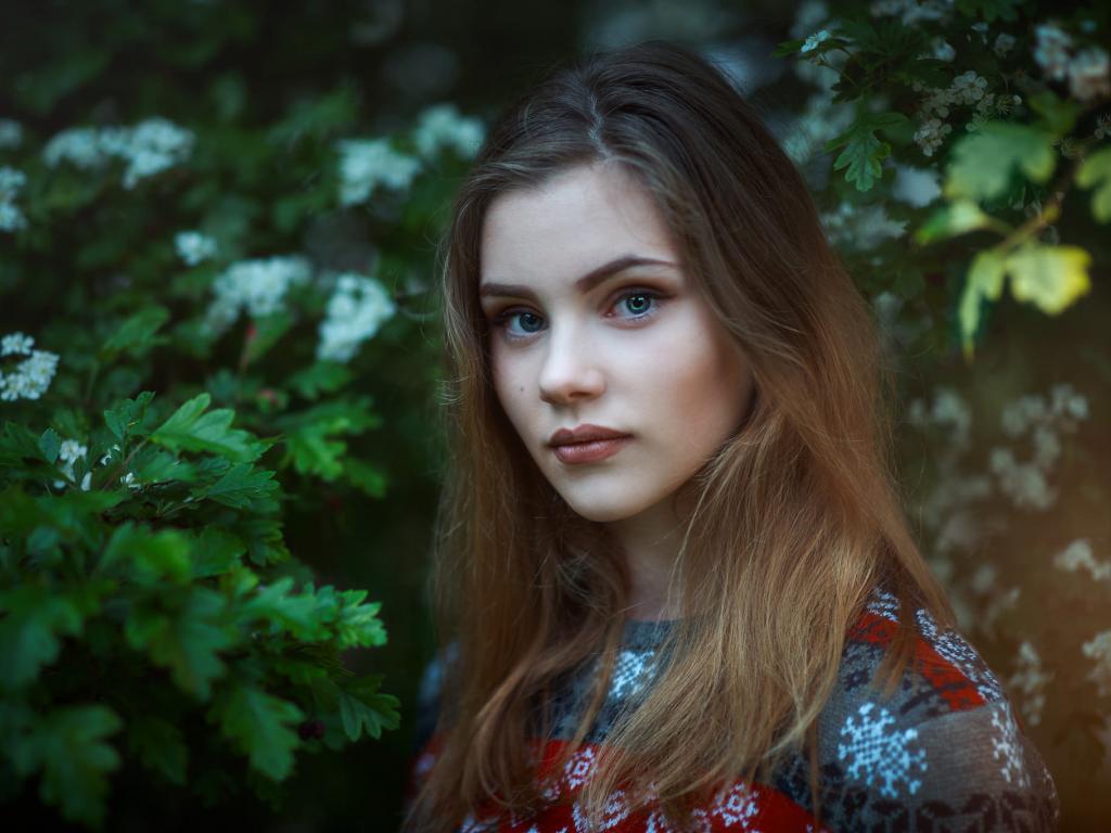 Wallpaper Portrait of the girl against the backdrop of greenery