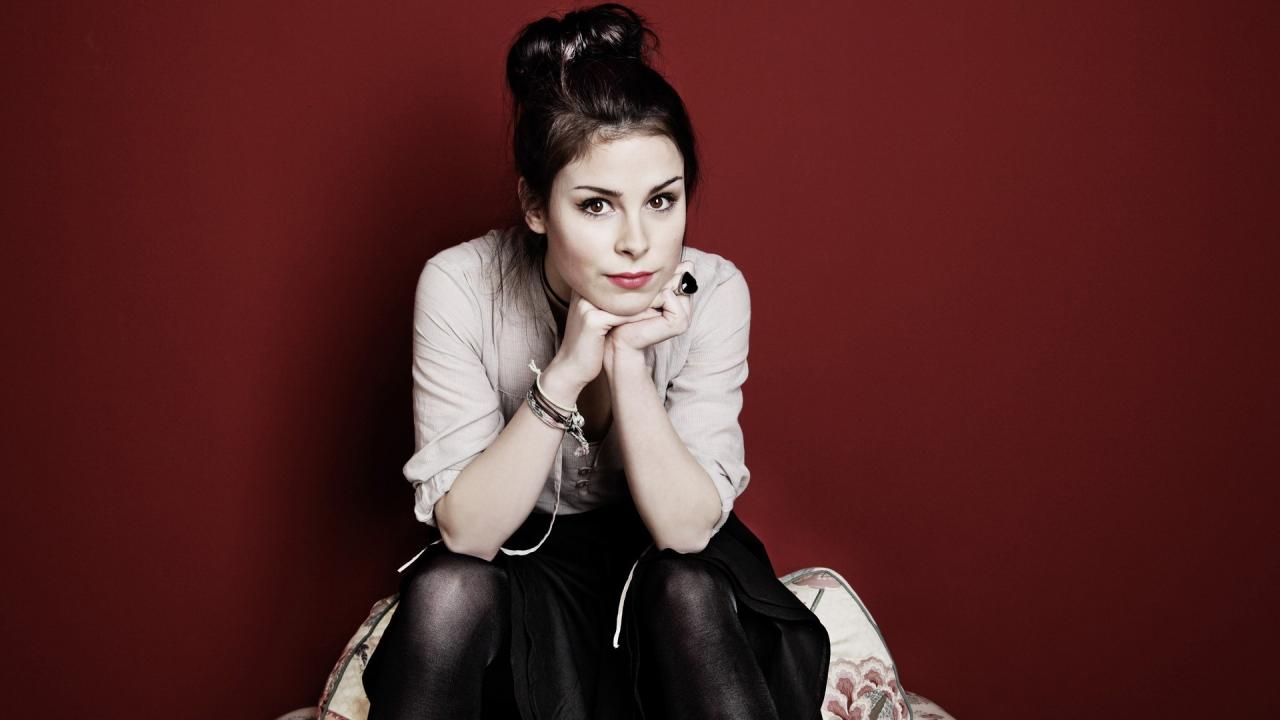 Wallpaper Singer Lena Meyer-Landrut on a red background