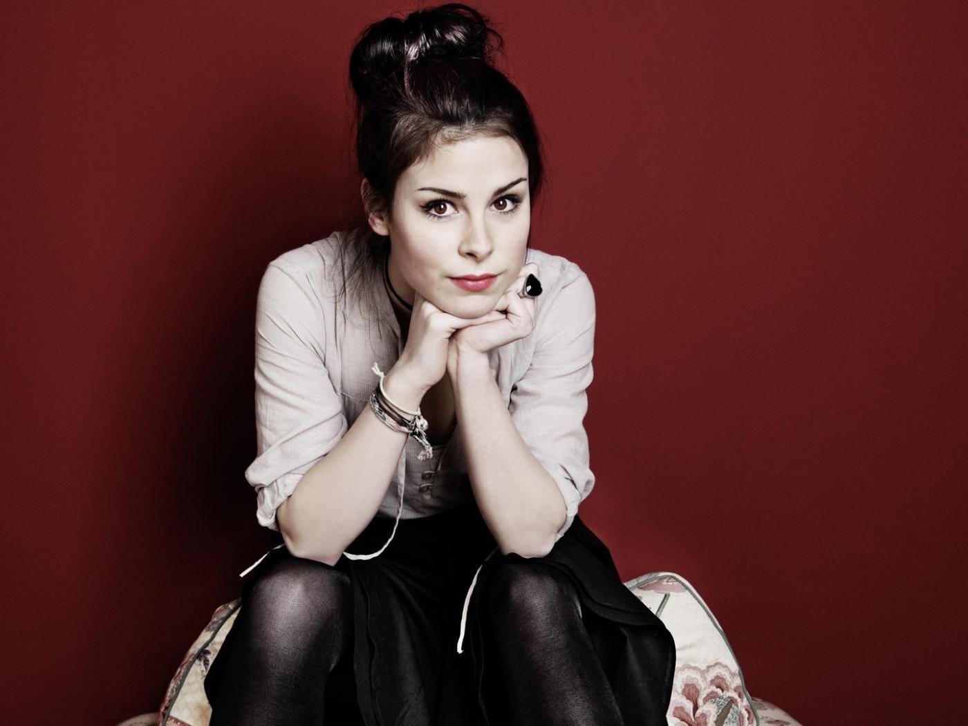 Wallpaper Singer Lena Meyer-Landrut on a red background