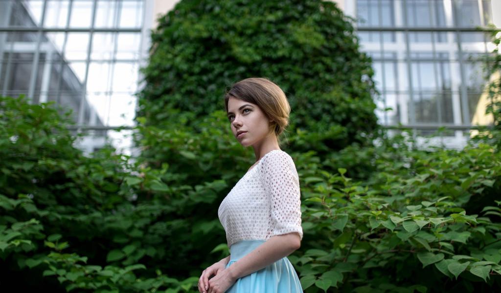 Wallpaper Photo of girl with short hair on the background of wood