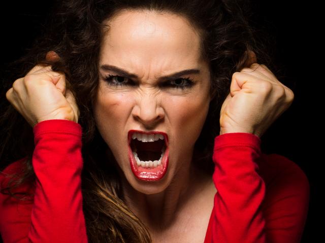 Wallpaper Emotions on the face of a girl in a red dress