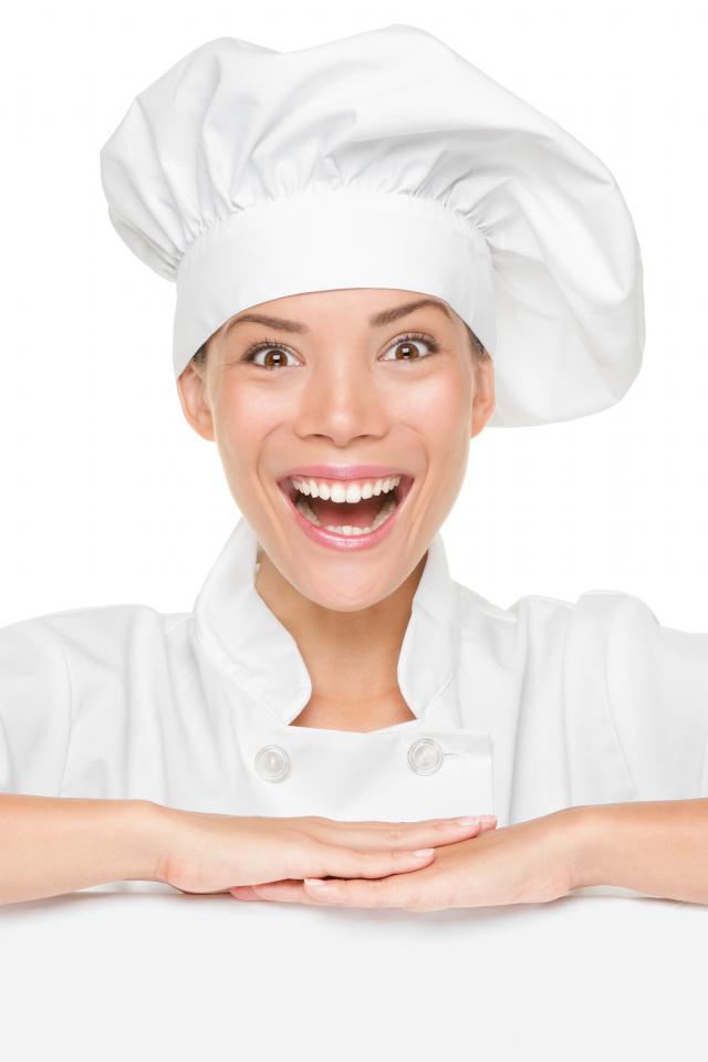 Wallpaper Smiling cook girl on white background