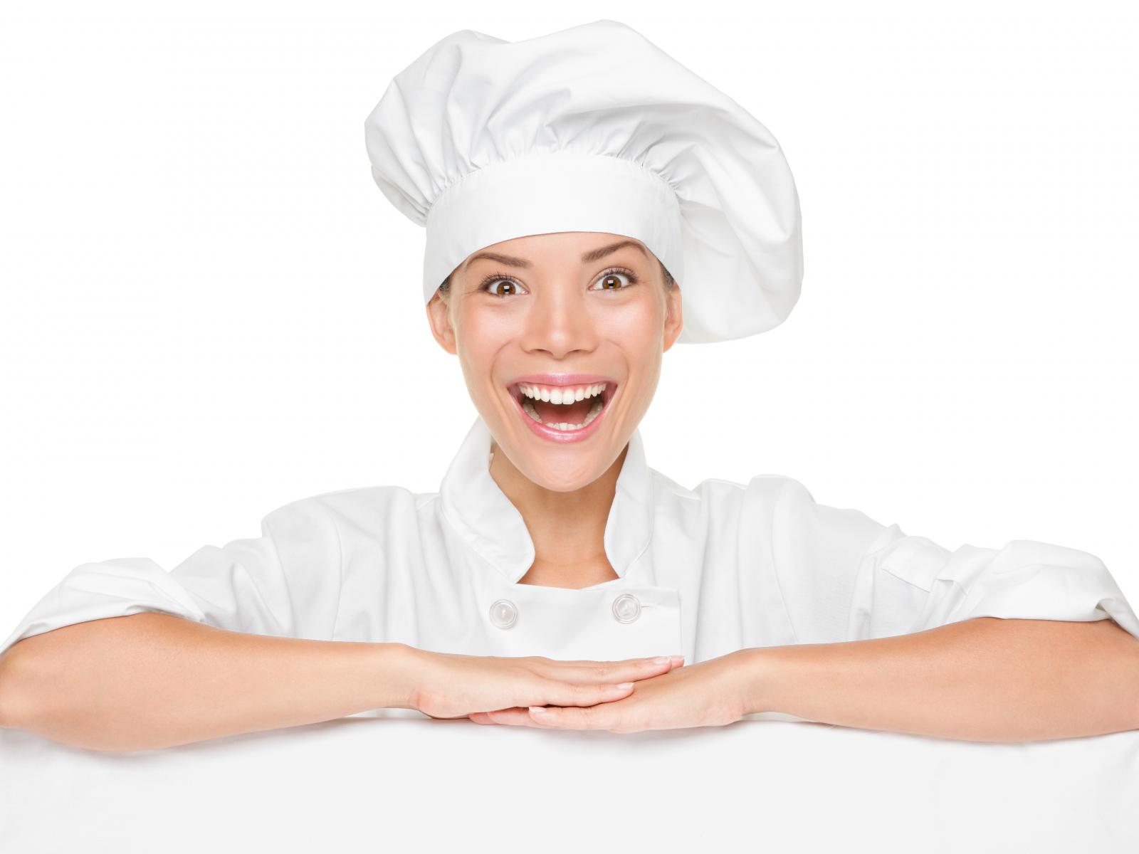 Wallpaper Smiling cook girl on white background