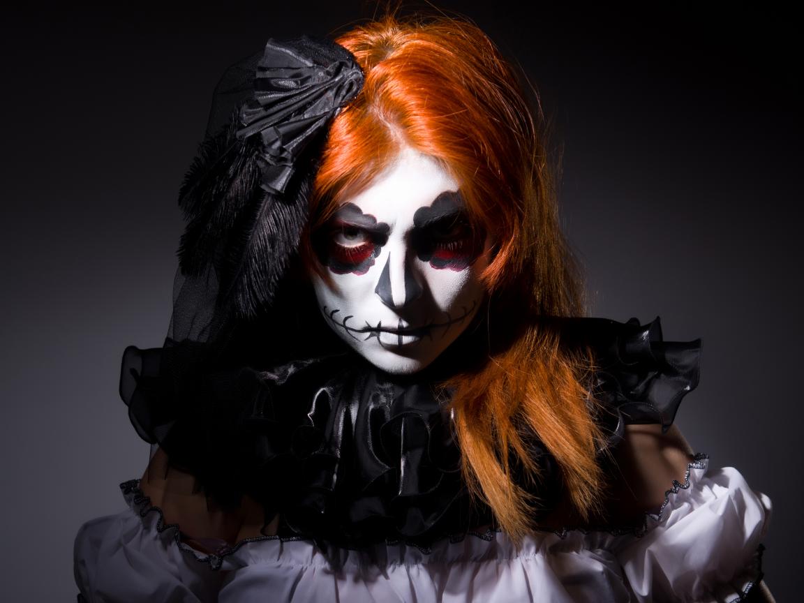 Wallpaper Redhead girl with Halloween facial mask