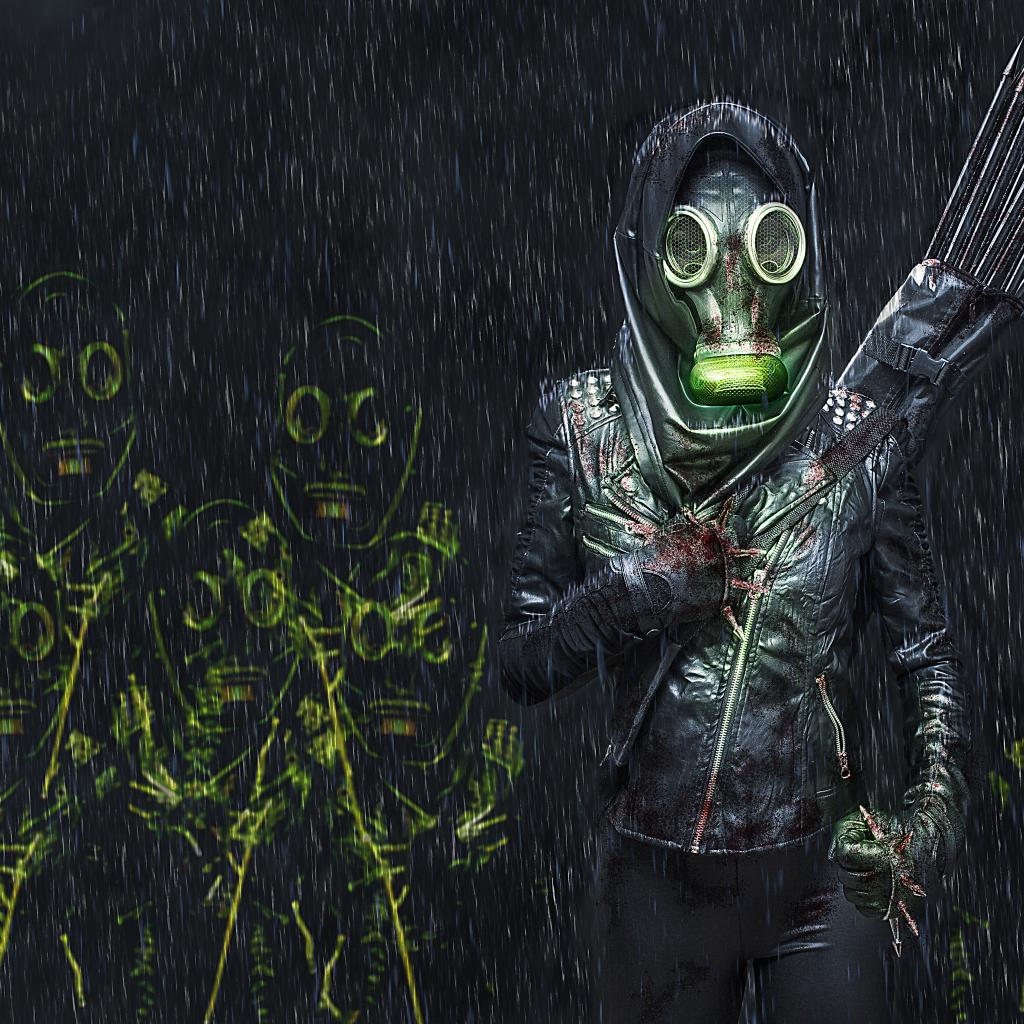 » Wallpaper Girl with arrows in a gas mask