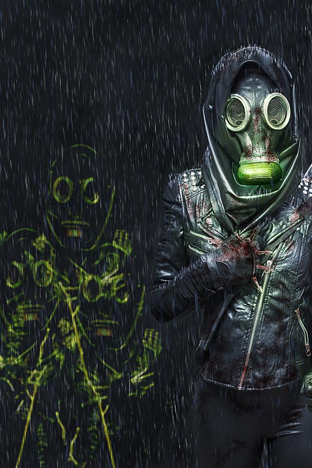 » Wallpaper Girl with arrows in a gas mask