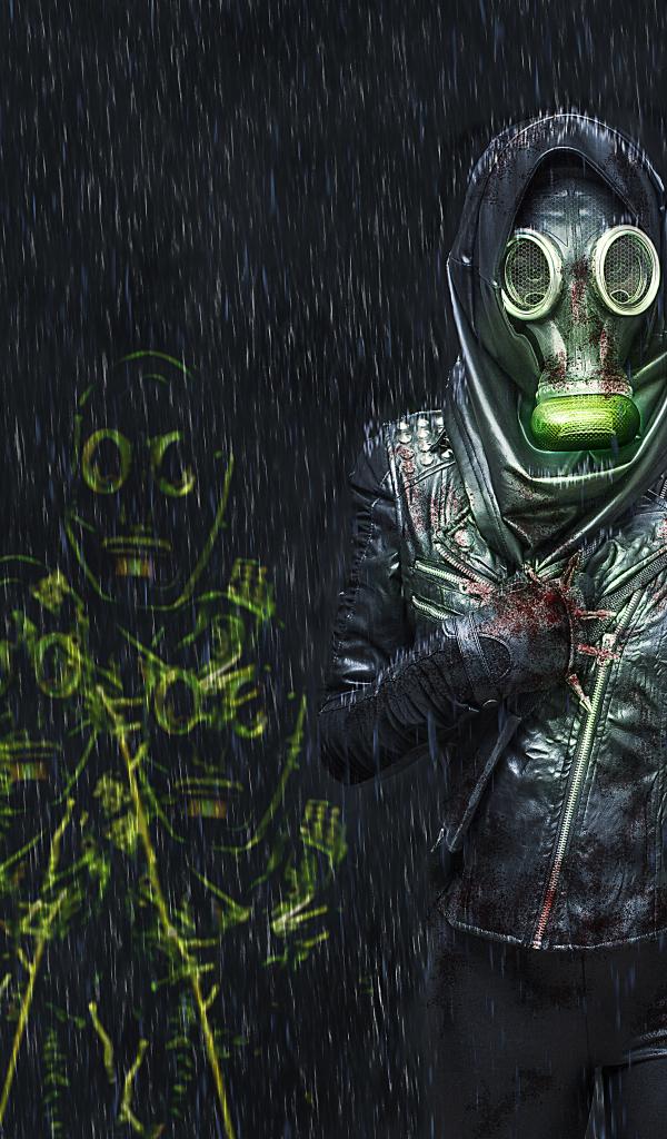 Wallpaper Girl with arrows in a gas mask