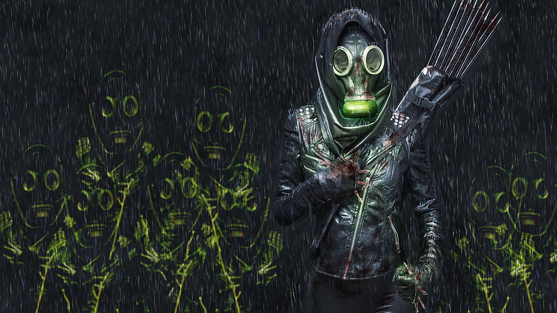 » Wallpaper Girl with arrows in a gas mask