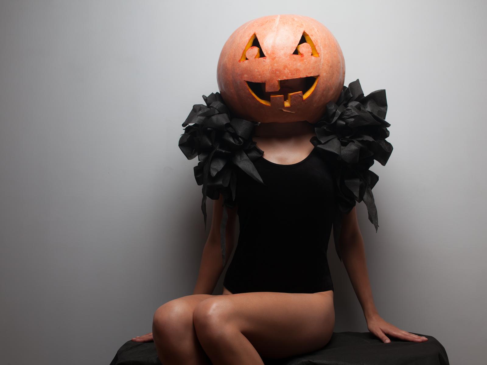 Wallpaper Halloween girl with pumpkin on her head